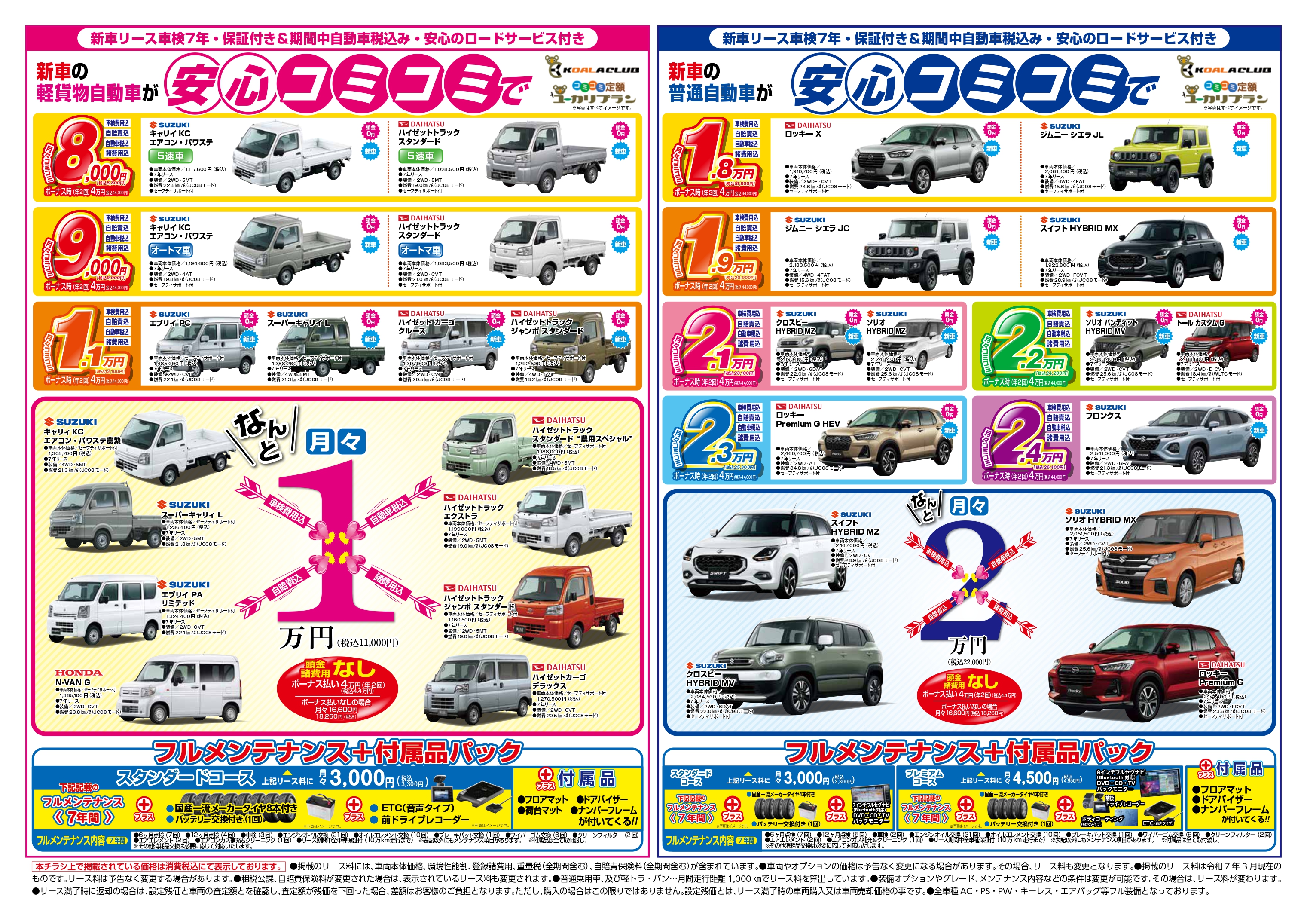 月々のリース料金にプラス数千円で7年間のフルメンテナンスサービスとお得なサービスをご提供!アフターフォローも万全です。